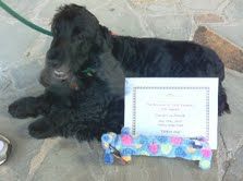“I just wanted to let you know how wonderful this past year has been with Newton. We consider May 28th his birthday (as that was the day we got him from OPIN), and he has been a true joy. He's doing wonderfully well and he certainly is a well-loved dog; we are sure the feelings are mutual. We took him to an event called Pooches on Parade the day before his birthday, to benefit a local shelter and rescue group. He won a prize as Oldest Dog, which came with a toy and -- best of all -- dog treats, so he was pretty pleased with himself. Here is a photo. Thank you so much for rescuing this remarkable dog. He's truly a special fellow who owns our hearts.”