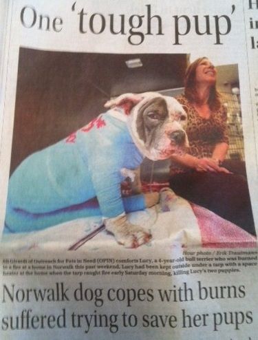 The outpouring of support from all over the country has been amazing this past week, and OPIN gratefully has received many, many kind donations and adoption offers from compassionate people who have been moved by Lucy's sad story. We're overwhelmed by the generosity of those who've never laid eyes on this sweet, heroic dog, but who nonetheless want to do whatever they can to share in her support at this desperate time.